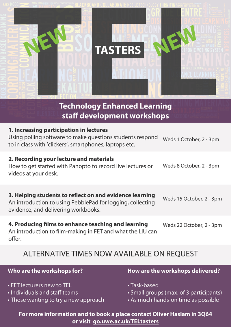 TEL Tasters – a series of staff development sessions