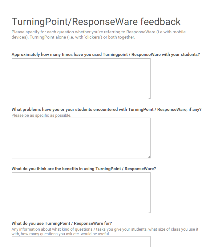 An example of a survey asking staff for feedback on their use of a TurningPoint/ResponseWare.