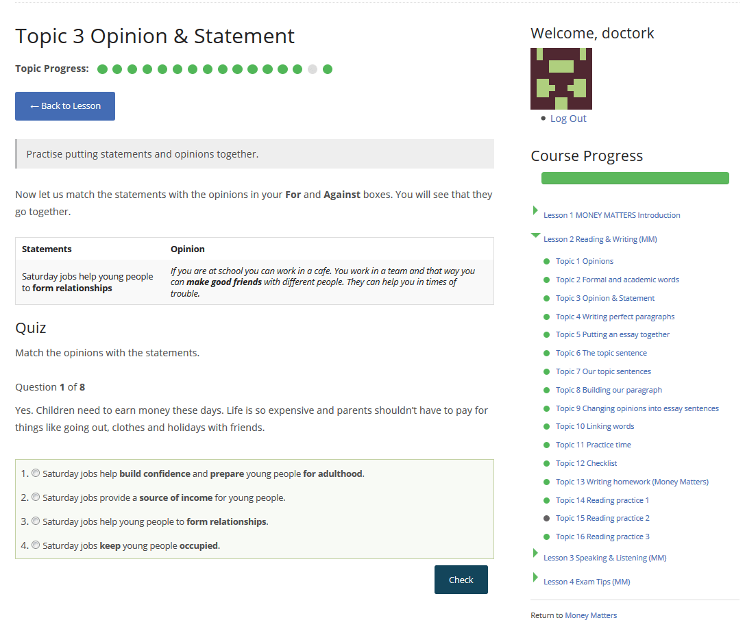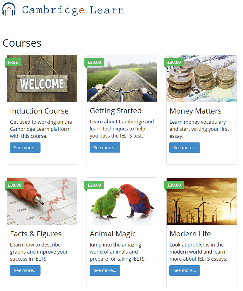 cambridgelearn.com is intended to help learners pass the IELTS (International English Language Testing System) test. It is the most highly developed LMS I have made in WordPress.