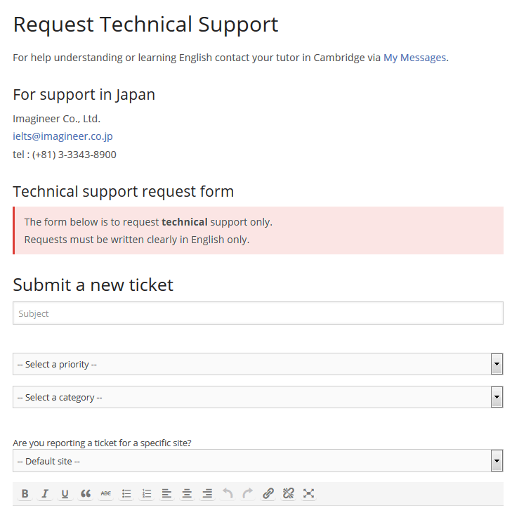 For technical support there is a ticketing system which allows learners to request individual help. There is also a list of FAQs and other guidance material for self-service support.